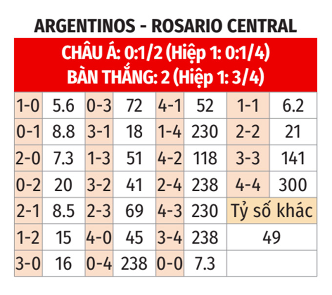 Chuỗi 5 trận sân nhà toàn thắng mới đây chứng kiến Argentinos Juniors phá lưới các bại tướng của họ tới 13 bàn. ba trong 4 trận Argentinos Juniors vs Rosario Central tại sân D.A.Maradona gần nhất cũng chạm hoặc vượt mốc ba bàn mỗi 90 phút. đấy là những dữ kiện đủ mạnh để tin vào khả năng “từ ba bàn trở lên” cặp đấu này.