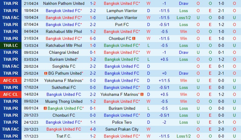 Giải VĐQG Thái Lan 2023/24 Thai League một đang đi vào giai đoạn về đích, cụ thể là vòng 26 trong tổng số 30. Hiện trên BXH Bangkok United đứng thứ 2 với 53 điểm. Khoảng cách giữa Bangkok United và đầu bảng Buriram đang là sáu điểm tuy nhiên đại diện thủ đô chiều mai mới ra quân đá vòng 26.