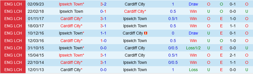 Về mặt đối đầu, Cardiff trội hơn với 5 chiến thắng sau mười lần gặp nhau gần nhất (thua 2). Thế nhưng đấy chỉ là những gì diễn ra trong dĩ vãng chứ thời khắc này Ipswich mới được đánh giá cao hơn. Lần tái đấu này, thất bại sẽ gọi tên đại diện xứ Wales.
