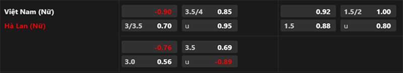 Bảng tỷ lệ kèo giữa đội tuyển nữ Việt Nam vs nữ Hà Lan