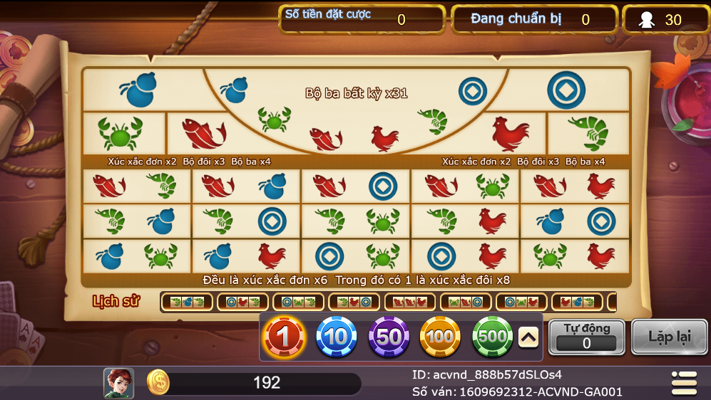Trước khi lắc xúc xắc người chơi dự đoán hình ảnh xuất hiện và tổ hợp xuất hiện của nó, đặt trúng sẽ nhận về tiền thưởng. Nếu không trúng thì tiền cược sẽ bị hệ thống thu hồi