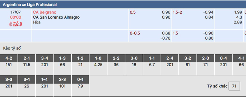 - Kèo châu Á Belgrano chấp 0.5 trái fulltime => Chọn San Lorenzo.