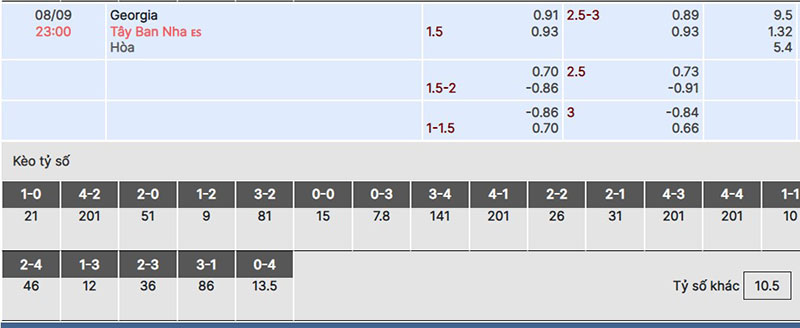 Ở vòng loại World Cup 2022 đội tuyển Tây Ban Nha đã có một thắng lợi tới 4 bàn trước đội tuyển Georgia. Với mức chấp mà nhà cái đưa ra thì buộc Tây Ban Nha cần thắng đối thủ với cách biệt ít nhất 3 bàn.