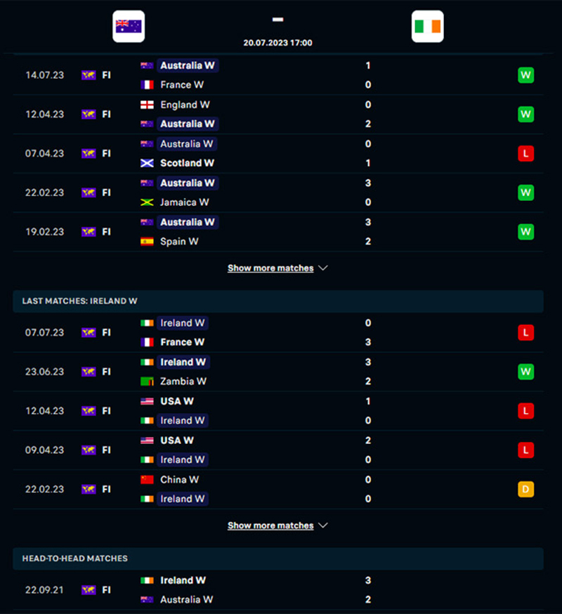 - Dự đoán tỷ số trận đấu: Australia 2-0 nữ Ireland.