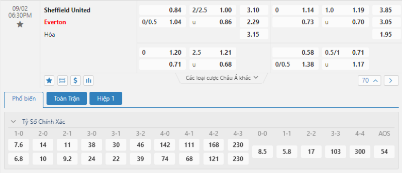 Thống kê đối đầu cho thấy, Everton có được 3 chiến và để thua 2 trận trong 5 lần hai đội gặp nhau gần nhất. Phong độ hiện tại của hai đội bóng trên mọi đấu trường cũng không mấy khả quan. Tuy nhiên, với lợi thế sân nhà thì Sheffield Utd vẫn nhận được sự tin tưởng tử giới chuyên môn. Kèo dưới là lựa chọn tốt cho bet thủ trong trận đấu này.