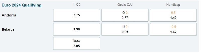 Kèo tài xỉu trận đấu giữa Andorra vs Belarus 2 trái