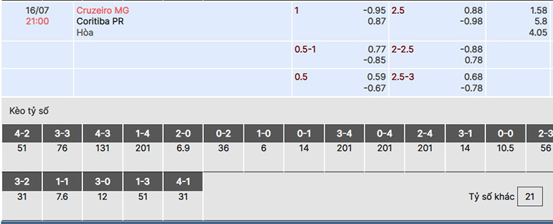 Soi kèo trận đấu giữa đội tuyển Cruzeiro vs Coritiba
