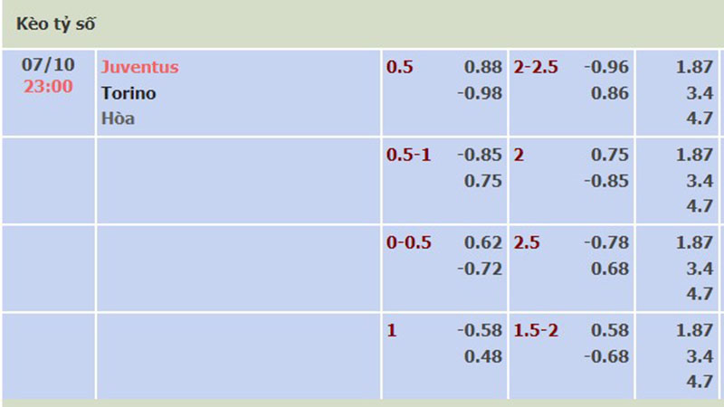 Soi kèo trận đấu giữa đội tuyển Juventus vs Torino