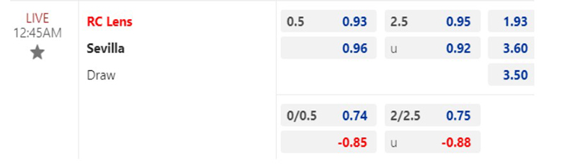 Trên sàn châu Á, kèo chấp hòa cho trận đấu giữa Lens và Sevilla được đưa ra với tỷ lệ không lệch nhiều giữa các lựa chọn đối lập. Lens đang có lợi thế khá tích cực tại thời điểm này với chuỗi 3 chiến thắng liên tiếp trên sân nhà, vượt qua cả rào cản châu Á.