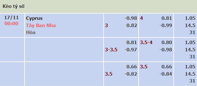 Soi kèo trận đấu giữa đội tuyển Síp vs Tây Ban Nha