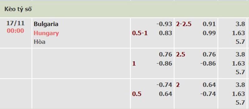 Chốt kèo trận đấu giữa đội tuyển Bulgaria vs Hungary