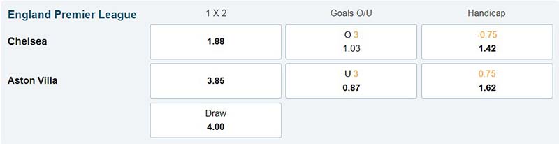 Chốt kèo trận đấu giữa đội tuyển Chelsea vs Aston Villa