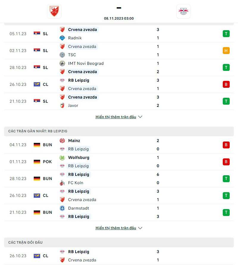 Phong độ thi đấu của đội tuyển Crvena Zvezda vs Leipzig