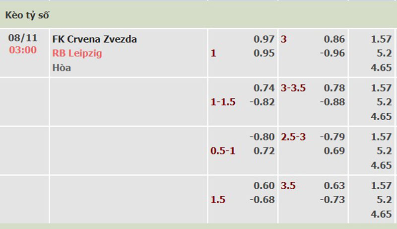 Soi kèo trận đấu giữa đội tuyển Crvena Zvezda vs Leipzig