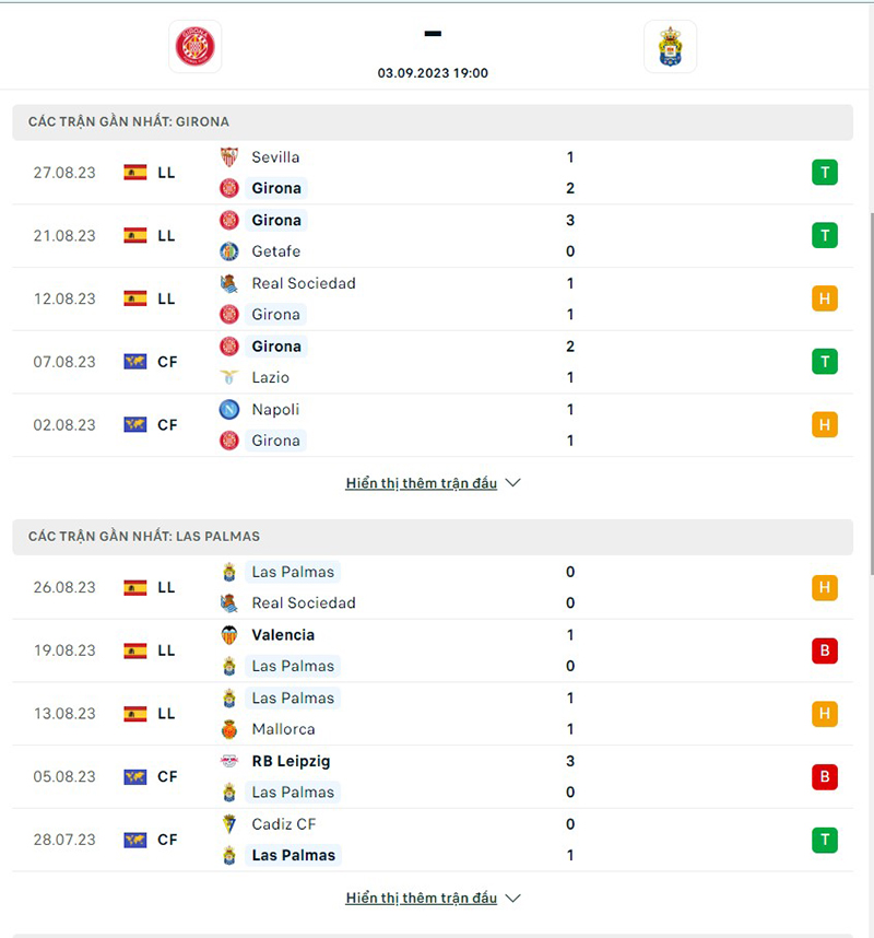 Thành tích thi đấu của đội tuyển Girona vs Las Palmas