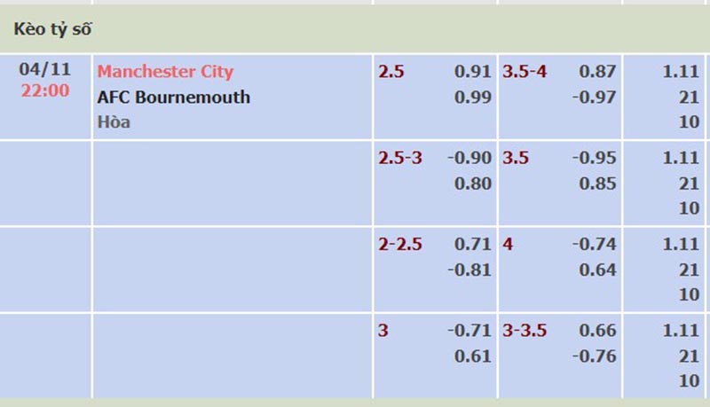 Kèo châu Á Man City chấp 2.5 trái fulltime