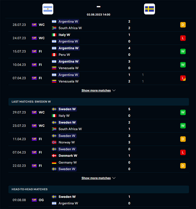 Phong độ thi đấu của đội tuyển nữ Argentina vs nữ Thụy Điển