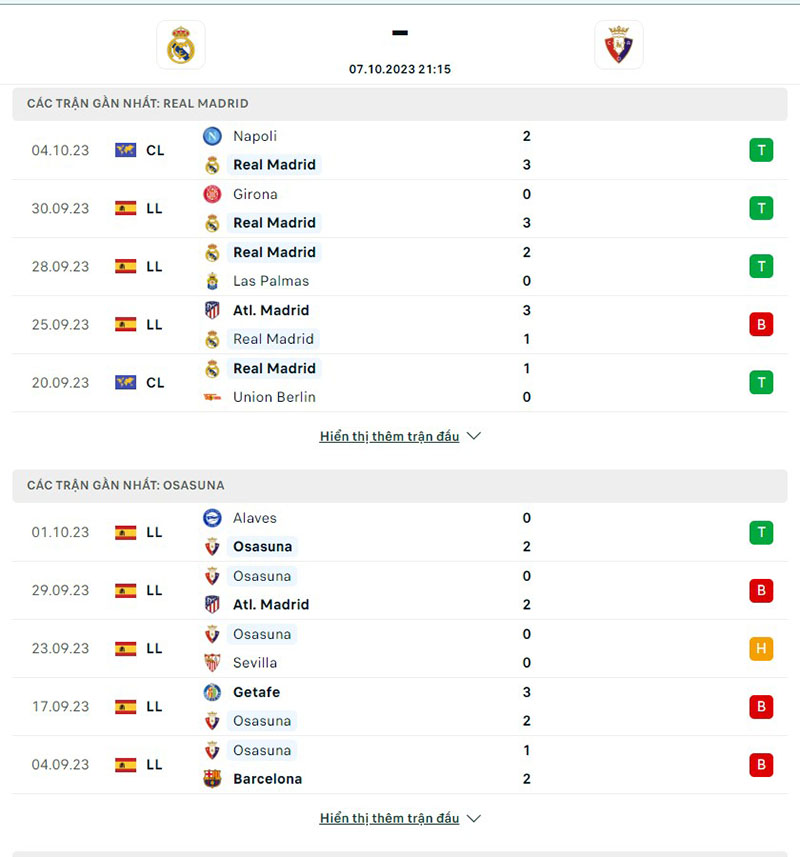 Phong độ thi đấu của đội tuyển Real Madrid vs Osasuna