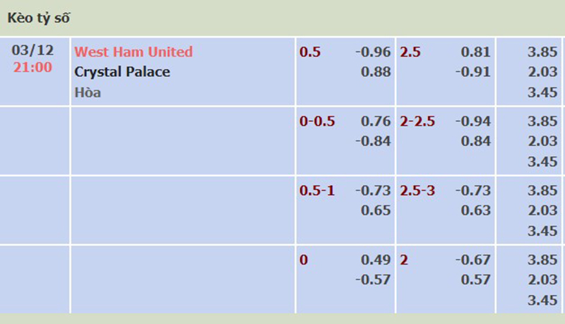 Soi kèo trận đấu giữa đội tuyển West Ham vs Crystal Palace